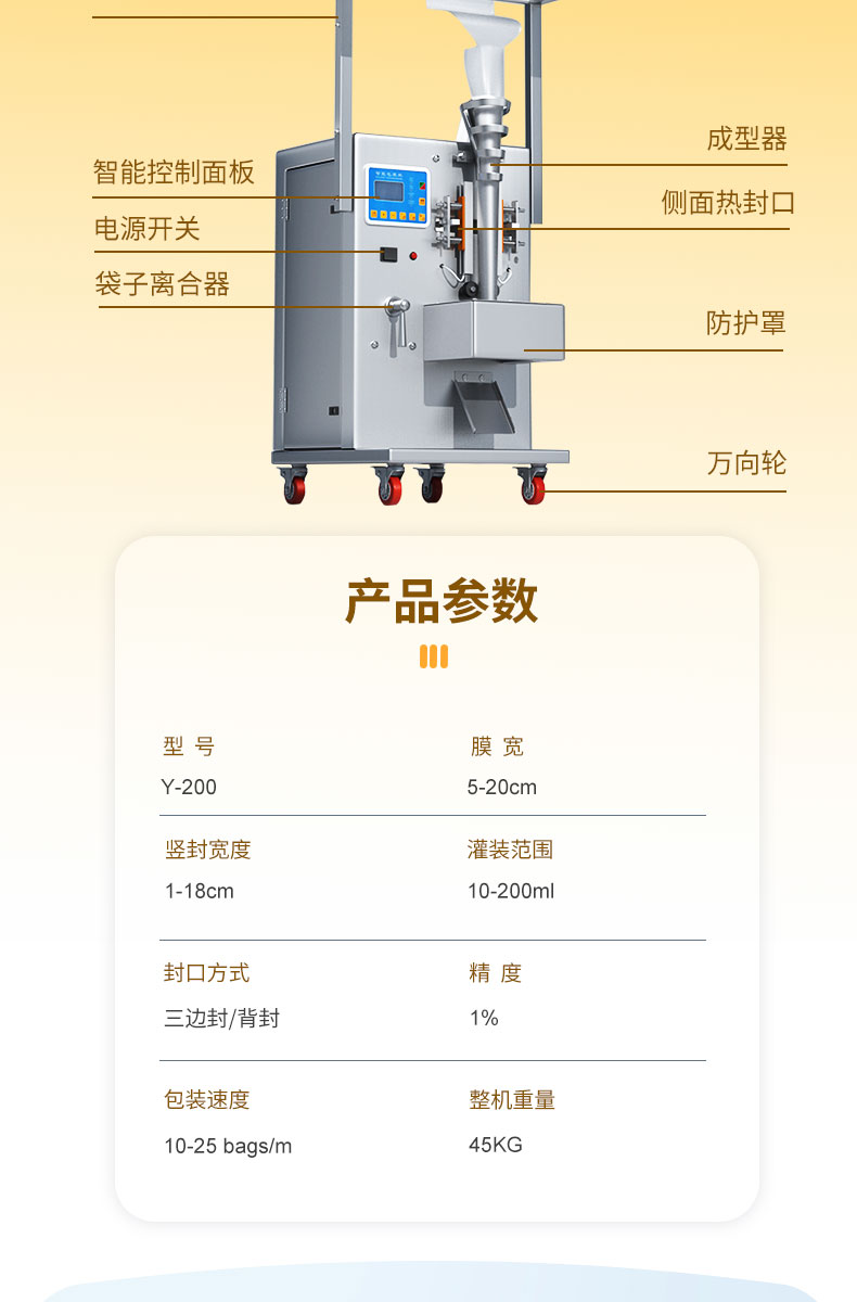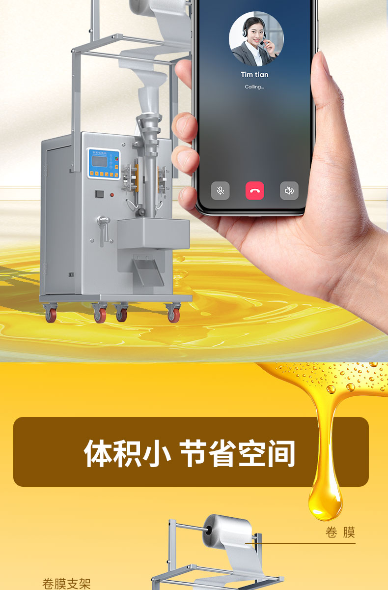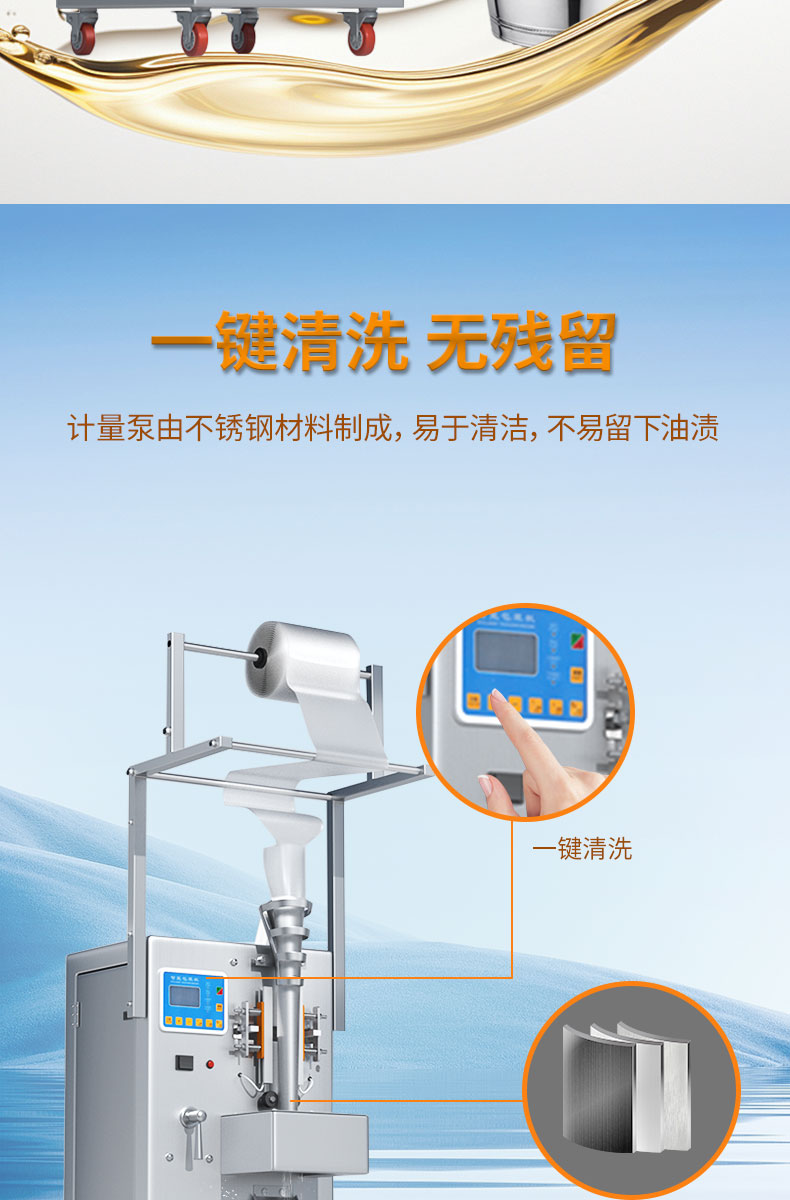 捷鼎生產(chǎn)的10-200毫升液體包裝機(jī),適用于各種不粘液體材料的自動稱重,填充、制袋、封口,適用于食用油、醬油、牛奶、酒精等產(chǎn)品,操作簡便,實(shí)現(xiàn)清潔衛(wèi)生的自動化生產(chǎn)。